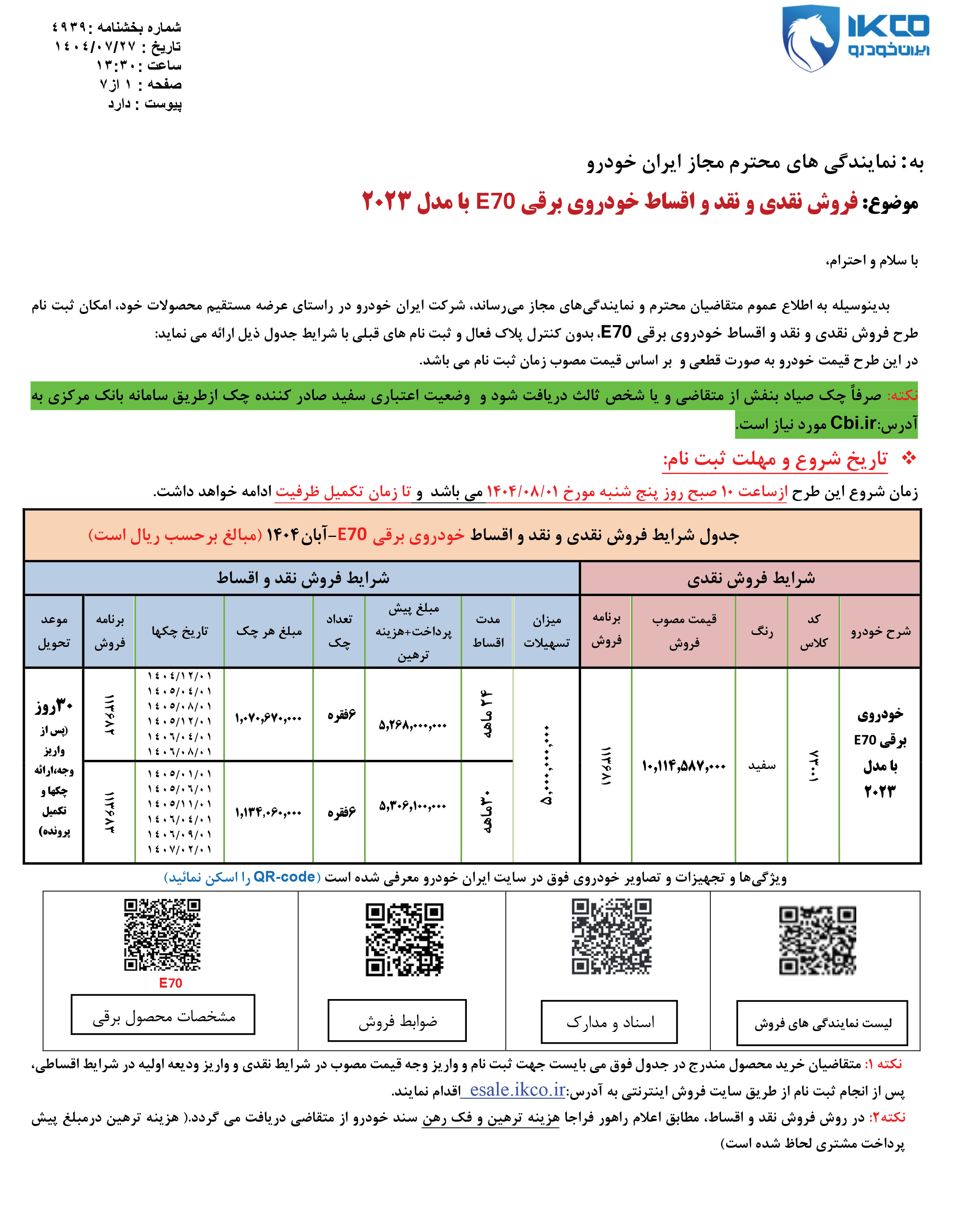 بخشنامه فروش خودرو برقی ایران خودرو (PDF)
