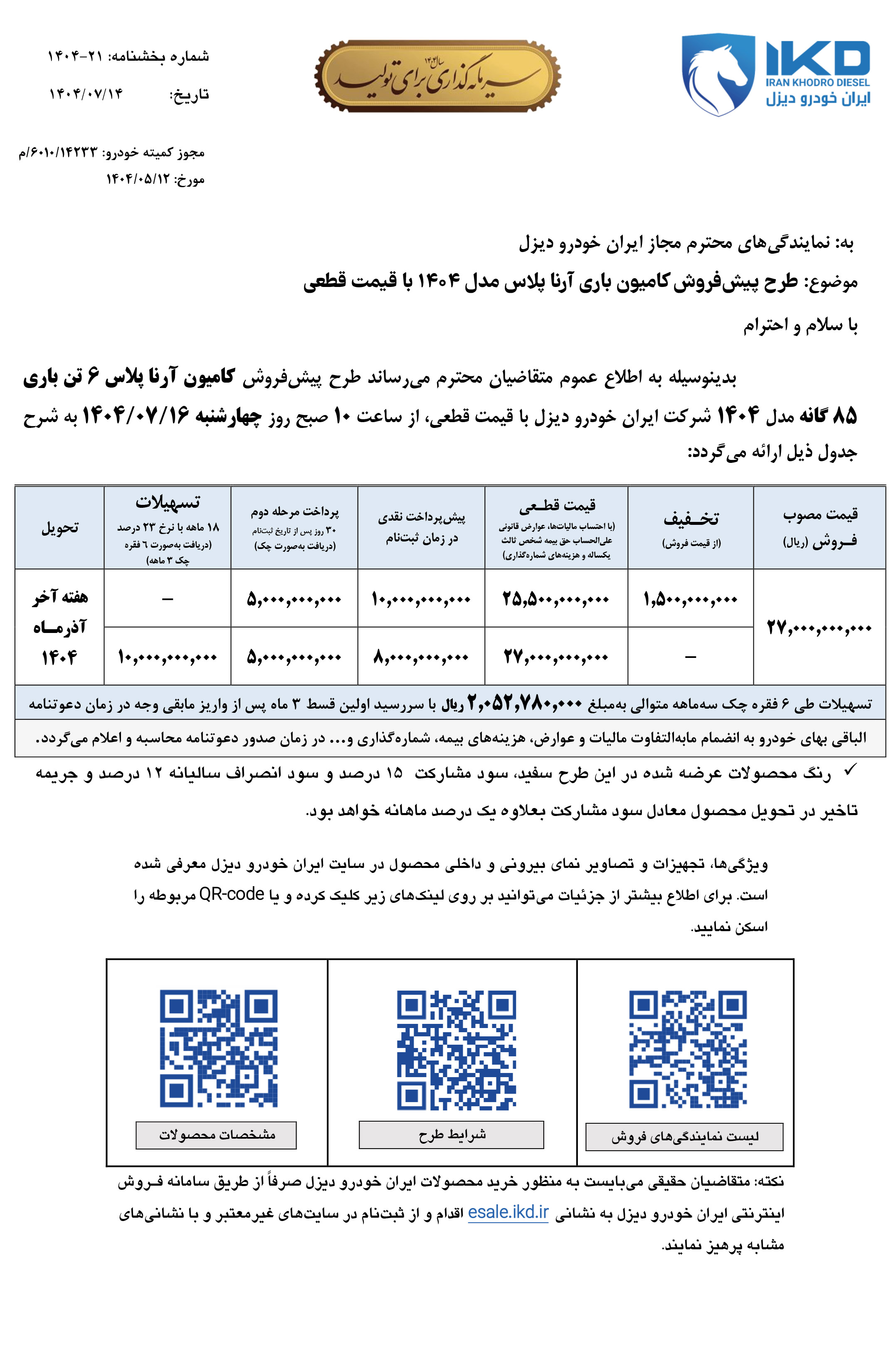 بخشنامه پیش فروش کشنده آئومان (PDF)